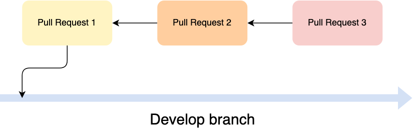 - Usually a PR can take some time to get merged and you want to work on another to unblock yourself. A good approach is to create a new PR basing on the previous PR’s branch. There is a really cool feature of Github that when the base branch is merged to develop, the dependent PR’s base will automatically changes to develop!
